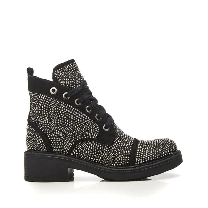 Add a new vibe to your look with Aleyza. This glitz boot is perfect for adding a touch of glamour to your everyday attire, featuring a classic lace-up finish and soft almond toe. Complete with soft faux fur lining and leather sock for a truly luxurious wear.