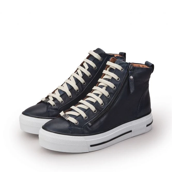 Add Annaken to your trainer collection. Featuring a high top finish for extra foot coverage and thick slab sole for everyday height. The side zip means you can set the laces for that perfect fit. Complete with soft leather sock and lining for all day comfort – style with your casual collection.