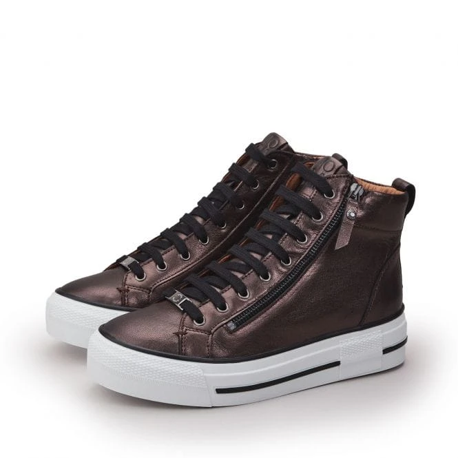 Add Annaken to your trainer collection. Featuring a high top finish for extra foot coverage and thick slab sole for everyday height. The side zip means you can set the laces for that perfect fit. Complete with soft leather sock and lining for all day comfort – style with your casual collection.