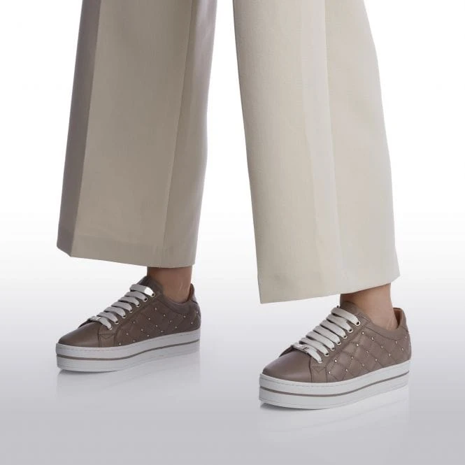 Aubree is always a good idea – our quilted stud, lace-up trainers will add a new feel to any outfit, the slab sole with contrasting stripe is perfectly on-trend – whilst the padded topline will keep you super comfy. Style with jeans and a blazer for an effortless look.