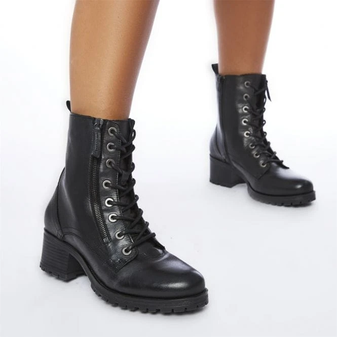 Beretta is worth boasting about. Featuring a decorative outside zip and cleated sole, adding new elements whilst still leaving the boot effortless to style. Complete with a soft leather upper and a faux fur lining for a luxurious wear. Style with a biker jacket.