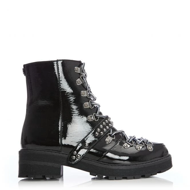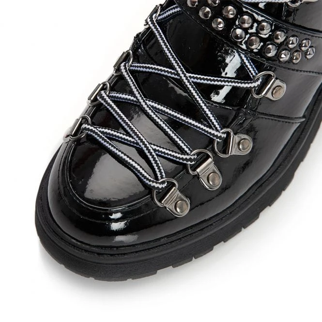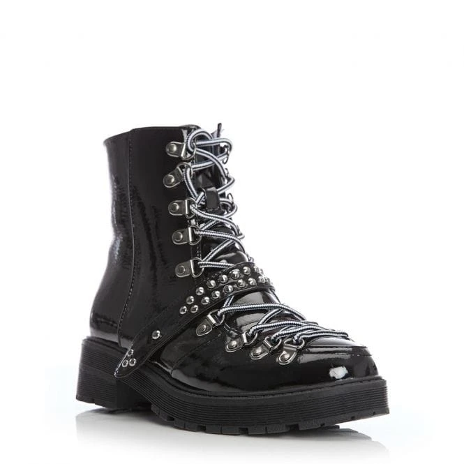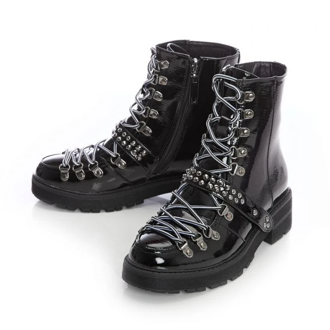 Look your best in Briory from our M by Moda collection – this beautiful black boot is perfect for adding a new look to your outfits. The faux fur lining ensures they feel as good whilst the inside zip allows for easy access. The contrasting laces add extra detail, whilst the studded strap adds another element. Complete with a chunky sole. Perfect to pair with an oversized jacket.
