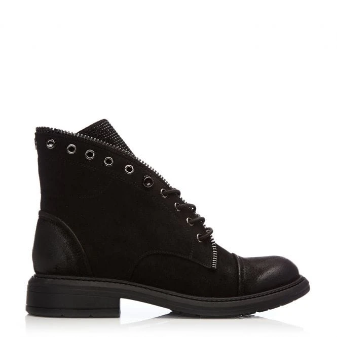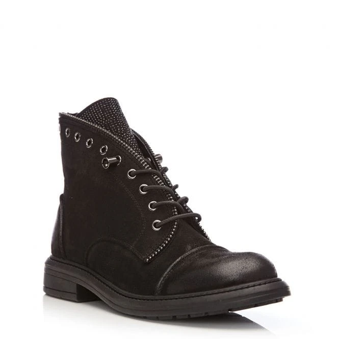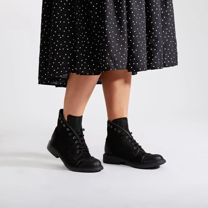 Put your best foot forward in Brixie our beautiful elasticated lace-up ankle boot. We love the gem embellished stud detail on the tongue, and zip trim around the edge – the eyelets continue around the back of the boot. The pull-on style allows for easy access whilst the flexible rubber sole lets the shoe move with you. Complete with a short pile faux fur lining and soft padded leather sock ensuring they feel as good as they look, style with denim for an effortless look.