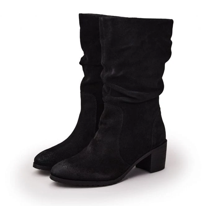 Discover Deami the block heeled ankle boot with ruched detail, perfect for adding texture to your look whilst leaving it effortless to style. Sitting mid calf for a flattering fit, making it perfect to wear over leggings or trousers. Complete with soft almond toe and half zip fastening for effortless foot access whilst still ensuring a close leg silhouette. We love the luxurious suede finish.Â