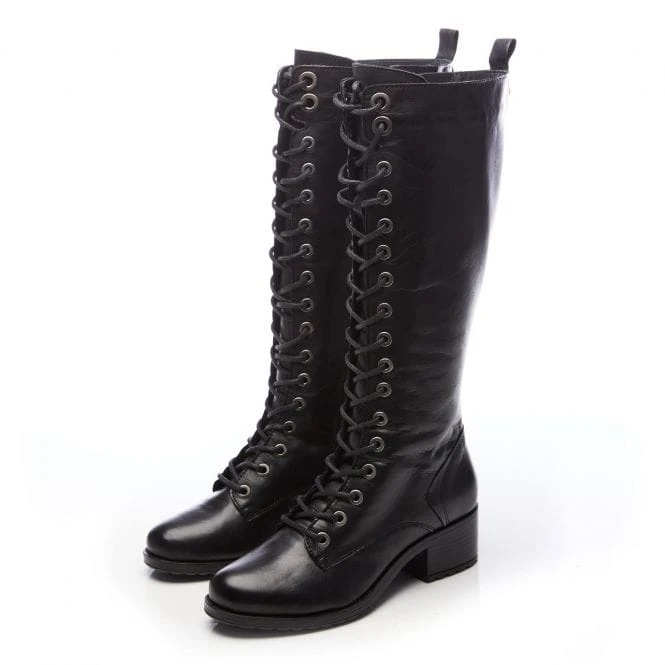 Add Hailey to your shoe collection. This lace-up leather knee-high boot features a perfectly practical block heel and an inside zip to allow for easy foot entry, meaning you can get the laces in place for the ultimate fit. Complete with a soft faux fur lining. Style with tights and a dress.