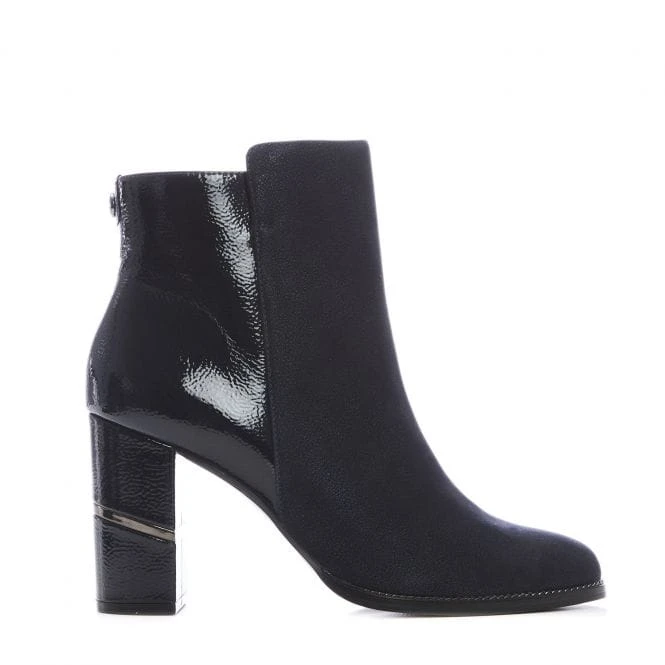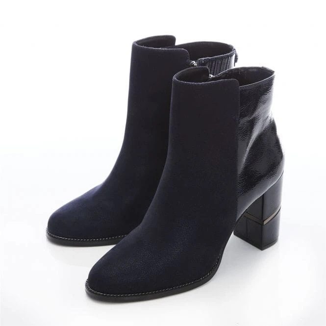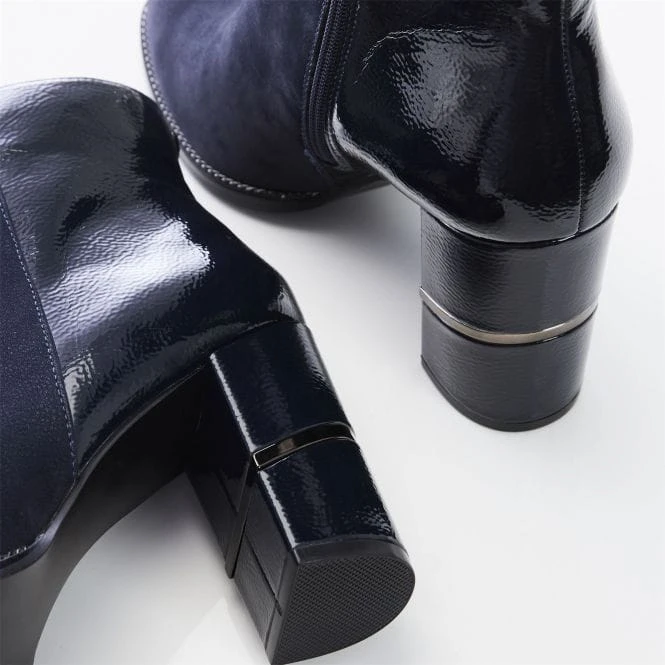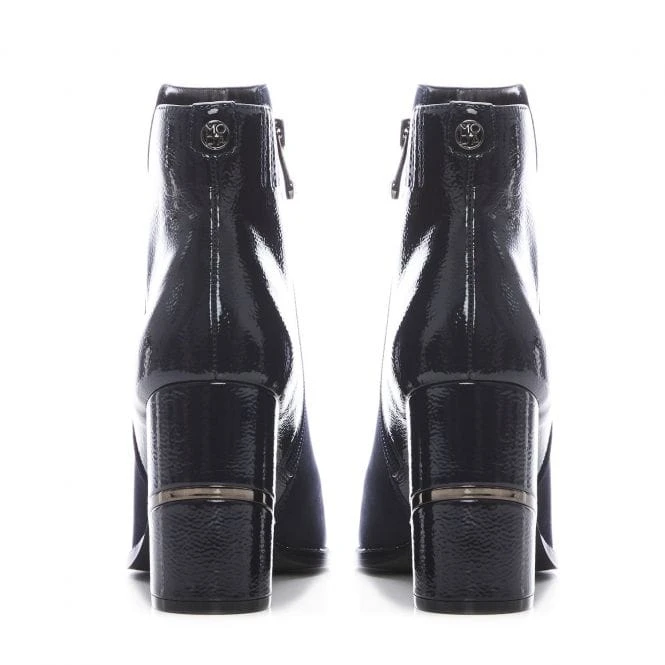 Make an impression in Mirren. A clean silhouette makes this boot perfect for versatile styling. The stepped topline allows for flexibility when walking, whilst the inside zip allows easy foot entry. Patent and metallic details catch the light for a touch of understated glamour.