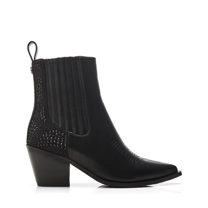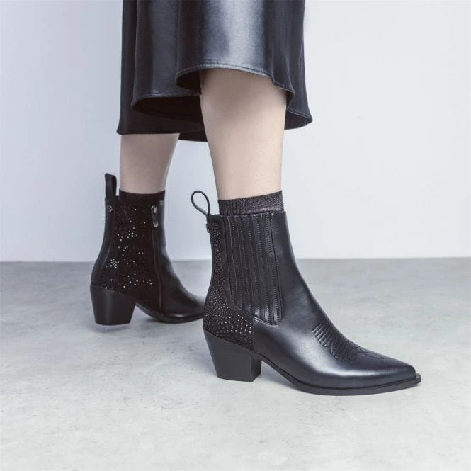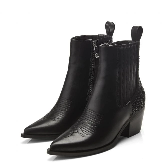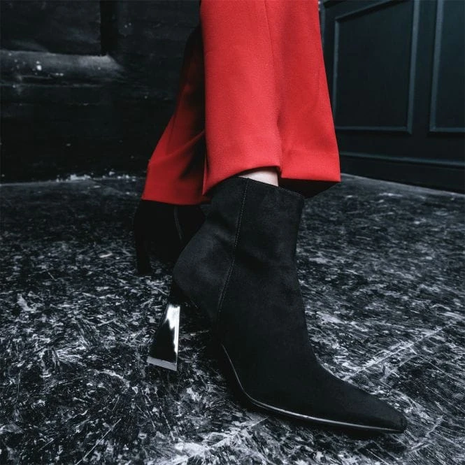 Navigate the new season in Nyrra. The pointed toe and block heel add to the impact of the boot whilst still leaving it effortless to style. The embroidered detail adds a new element to the shoe, whilst the heel tab helps with foot entry. Complete with faux fur lining.