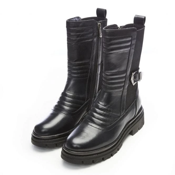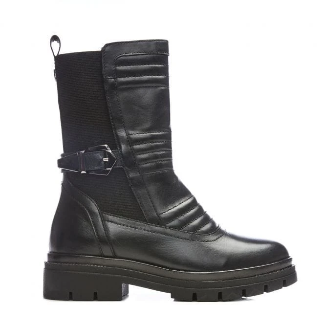 Reach new fashion heights with Raelyn. Featuring, quilted detail and a chunky cleated sole – so on-trend. Complete with an elastic back panel which allows for a flawless fit. The soft leather upper and faux fur lining ensures the boot feels as good as it looks – style with leather trousers, a jumper and a trench coat.