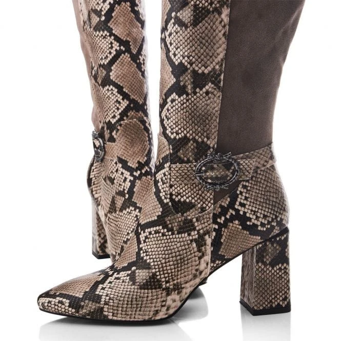 Serve up new looks with Saretta. Sitting below the knee, this long boot features a wearable block heel and buckle trim, complete with a powerful pointed toe. The faux fur lining and soft leather sock ensure it feels as premium as it looks.