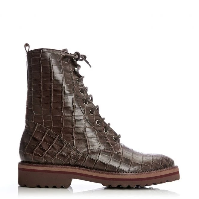 These lace up mock-crocodile boots are a great alternative to a standard boot, offering an a look that stands out from the crowd. With a block heel and leather lining the comfort factor is perfect for all day wear and will tie your out fit together to a tee.